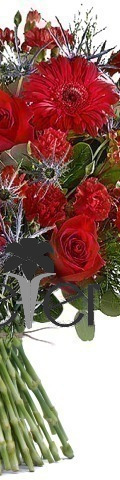 Fresh, fragrant, and bursting with colour, the Red Rush Flower Bouquet will brighten any room. A popular gift choice for Valentine's Day, birthdays, wedding anniversaries, and good luck celebrations, it includes 3 red roses, 2 red gerberas, 3 red carnations, and red spray carnations. Handtied with just a hint of seasonal greenery for contrast, this ruby red flower arrangement is perfect for friends, loved ones, and business associates.