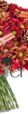Red Chrysanthemums, Cinnamon Sticks, Pinecones