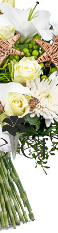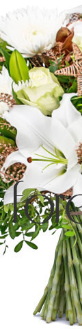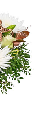 4 White Roses, 2 White Lilies, 4 White Spider Chrysanthemums, Pinecones